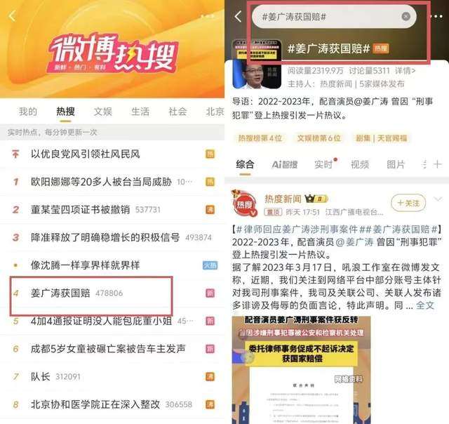 随后律师事务所发布声明,这场在看客、粉丝、黑子以及大量营销号嘴里长达3年的“罗生门事件”才显得清晰不少:律师以充足的无罪证据为依托,与检察机关进行充分沟通后,2023年检查机关最终做出“不起诉决定”。后续姜广涛获得了金额近20万元的赔偿。