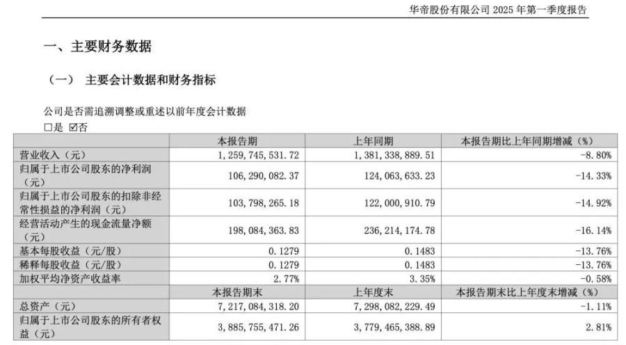 2025年第一季度,“厨电行业第一股”华帝股份交出的“成绩单”有点难看。
