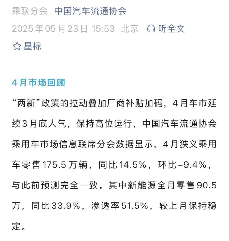 2025年4月新能源渗透率,图源中国汽车流通协会官方微信公众号