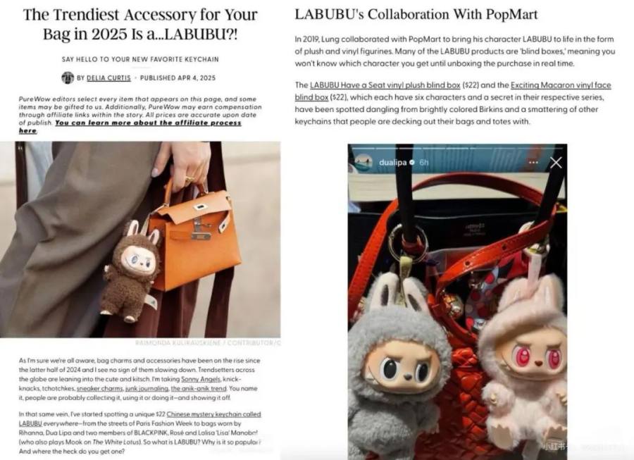 潮流青年谁没有点虚荣心呢?都是潮玩,与爱马仕捆绑出现的LABUBU听起来就是要被其他潮玩多了些点高级的意味。同样,那些奢侈品用户,看到LABUBU频繁地与奢侈品出现在一起,为跟上这波潮流难免效仿。