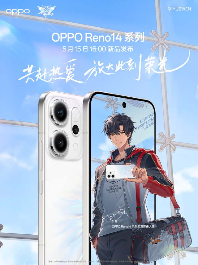 以今年5月《全职高手》与OPPO的合作为例,今年时值《全职高手》小说故事中的世邀赛元年,OPPO将“捕捉每一个奔赴热爱瞬间”作为联名主题,与叶修合作,主推新机型OPPO Reno14的LIVE PHOTE功能。同时,OPPO Reno系列主攻年轻、潮流的消费群体手机也与《全职高手》的粉丝画像高度契合,叶修生日的节点也恰恰与新机首发的5月存在强重叠。