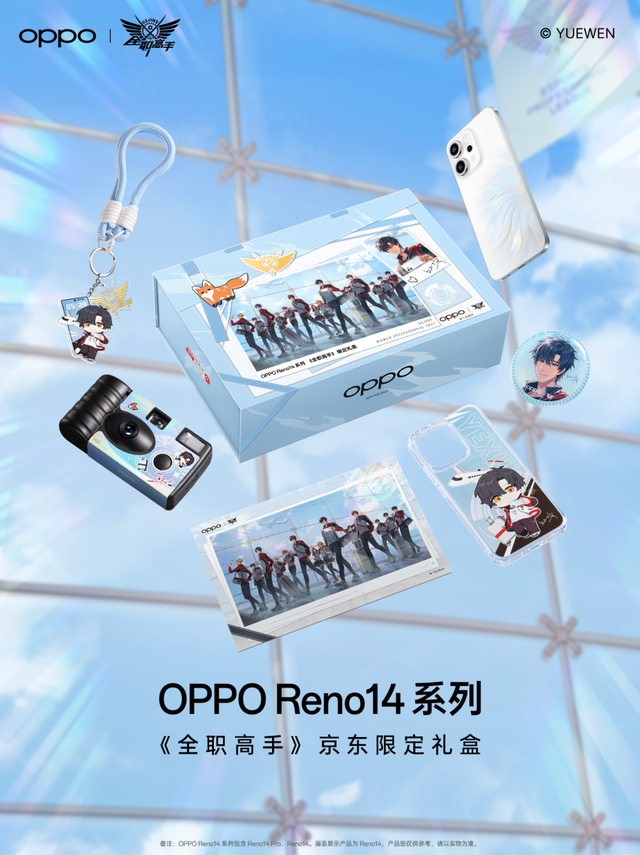 因此,在今年叶修生日前夕官宣的联名在声量与销量侧获得了品牌方的高度认可。5月10日,OPPO官宣叶修作为OPPO Reno14系列官方实况影像大师,并于5月15日在线上推出了OPPO《全职高手》京东限定礼盒,除手机外,礼盒内包含了叶修限定徽章、全员出发路透限定色纸、一次性胶卷机、手机壳、Q 版挂件等周边产品,吸引大量IP粉丝下单。联名礼盒的开箱视频更是在小红书收获了高赞。