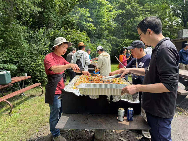 开饭前按照例行的规矩拍摄全家福。今天有将近200校友和他们的亲友参加。在大华府地区,有200人参加的聚会可以称之为超大型聚会。一般的社团有几十人,将近百人就已经是成功的大型聚会了。科大20世纪80年代招生名额只有600余人,分别是清华北大招生人数的三分之一到四分之一。扩招到一千八百人后,仍不及清华北大一半。然而科大学子在北美的发展绝不逊于北大清华。烧烤会人声鼎沸。到会的校友可谓群英荟萃。有学术上的领头人教授、系主任、学院院长,也有高科技公司的技术主管,部门经理,还有自己创业金融投资行业大咖。除了科大校友,还有一直以来支持校友基金会的企业代表、嘉宾代表应邀出席,更有北美各地的学术大咖、商业巨头、社会名流。