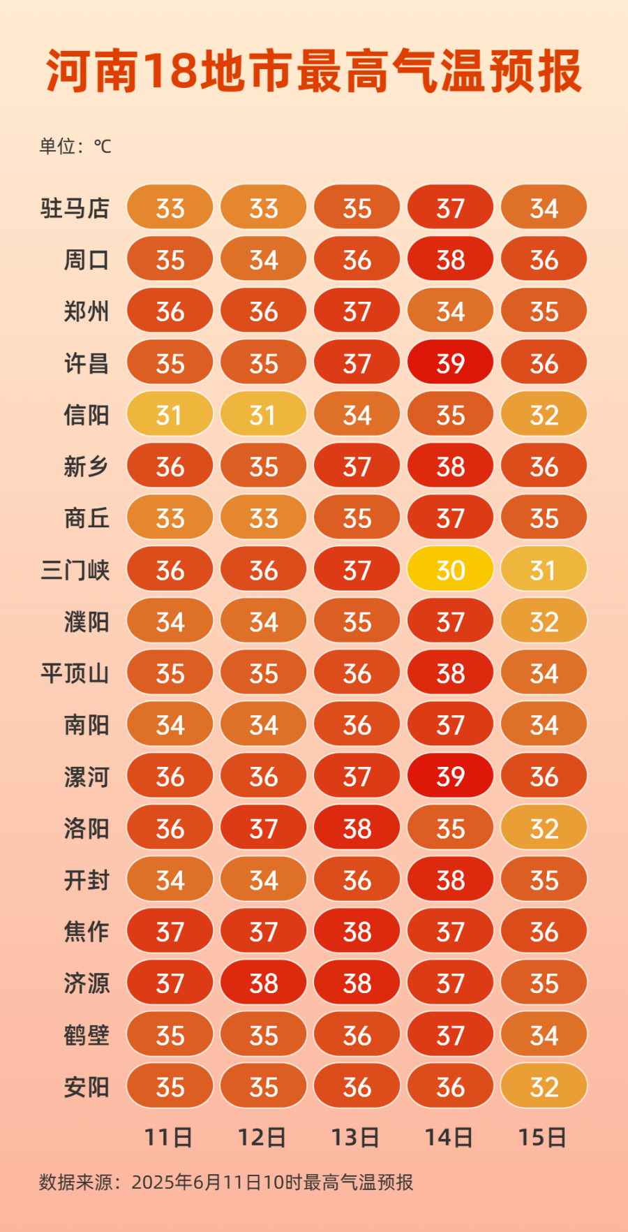 本轮高温范围广、持续时间长,不少地区未来一周几乎是高温全勤!尤其是焦作、济源37℃以上高温持续长达4天!
