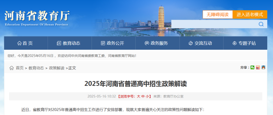 近日,省教育厅对2025年普通高中招生工作进行了安排部署,现就大家普遍关心关注的政策性问题解读如下: