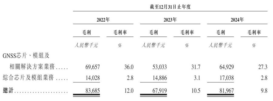 不仅如此,华大北斗的毛利率也出现了连续两年“跳水”,由2022年的12.0%降至2024年的9.8%,主要是因其GNSS芯片、模块及相关解决方案业务板块的毛利率由2022年的36.0%降至2024年的27.3%。