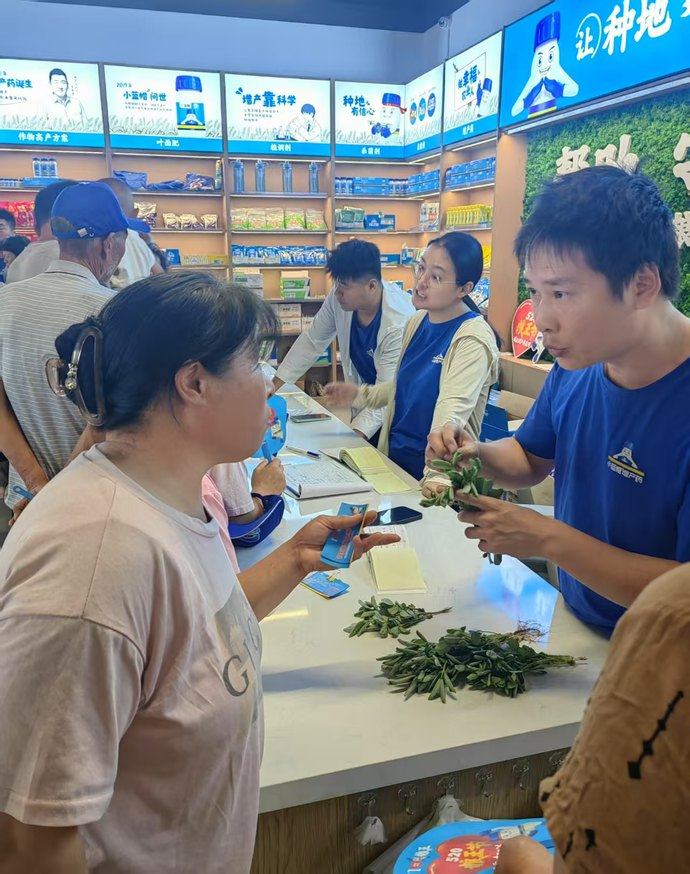 豫之星总经理王会平介绍,门店会定期的举行线上或者线下的专家坐诊专家会帮门户解决一些种植的难题;同时,店内配置的有都是专业的技术员技术老师,经常下地帮农户,精准的解决病虫害管理的问题;也会定期的给农户朋友们提醒用药指导管理培训 ,然后让农户通过日积月月累种植,提升种地的专业性。