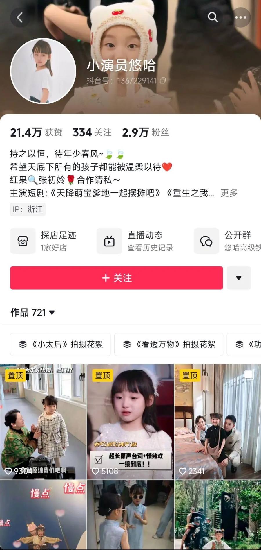 短剧之外,如何开拓更多的商业化路径也是家长关注的问题。悠哈的家长回忆,《天降萌宝爹地跟我一起去摆摊》大火时,她没有抓住涨粉机遇,只过了两天热度就过去了。最近悠哈主演了一部TOP10的短剧,她提早准备花絮、开直播,成功涨粉2万,她能感受到,最近小演员更能吸引受众注意力了。