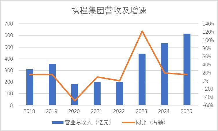 其中,最能够反映整个旅游市场景气度的是在线OTA平台,以携程的数据为例,其2024财年收入达到创历史新高的533亿元,同比增长接近20%,这一增速甚至比2018&2019年还要高。