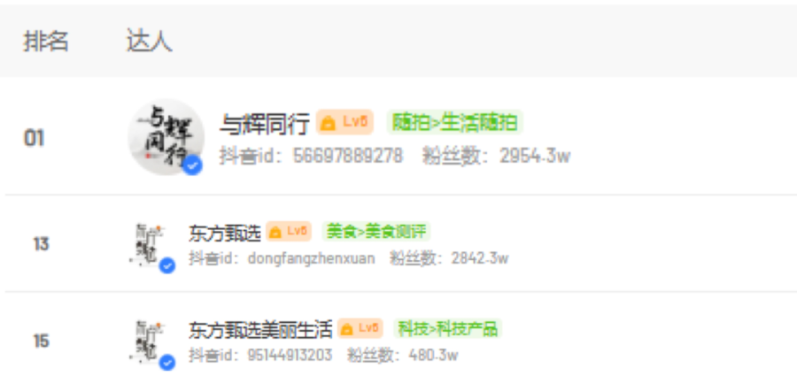 第三方数据平台显示,刚刚落幕的618大促中,与辉同行登顶抖音达人带货榜单榜首,东方甄选、东方甄选美丽生活直播间均未进入前十(分别为第13、15名)。不过,东方甄选在抖音以外还有其他销售渠道,且有多个矩阵账号分流。