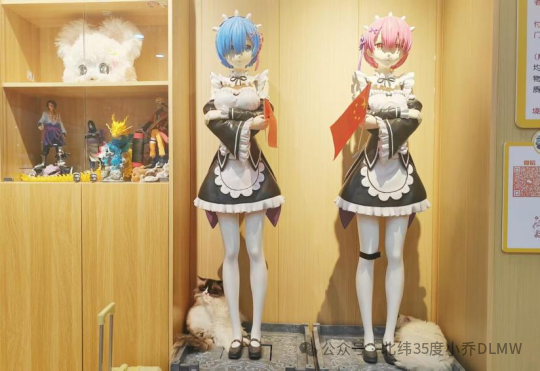 “30元不仅能撸猫,还能吃甜点,喝咖啡,超值的!”球球说。清真·猫の物语猫咖馆也融合了二次元元素,大厅中央摆放着动漫《Re:从零开始的异世界生活》中人气角色雷姆的大型等身手办,吸引了众多顾客打卡拍照。