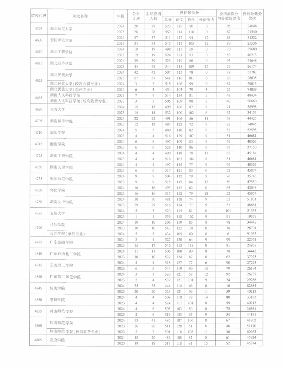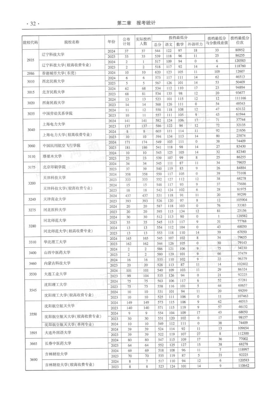 2023-2024年河南高考本科一批、二批院校平行志愿批量投档最低分数线汇编