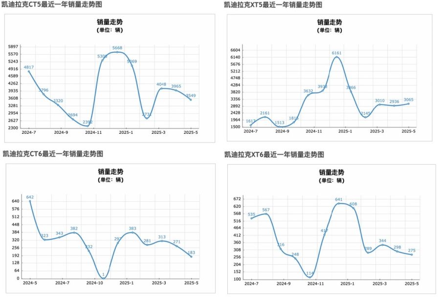分车型具体来看,根据车主指南数据显示,凯迪拉克5月销量呈现 "冰火两重天",CT5以3549辆勉强支撑,截至今年5月末的累计销量为19362辆。XT5则售出3065辆,截至5月末累计销量为15022辆。而定位入门的CT4在5月份仅1辆的销量堪称尴尬,定位高端的大型车XT6月销仅275辆,CT6月销也只有183辆,而且该两款车型销量在今年还均呈现出逐月下滑的趋势。