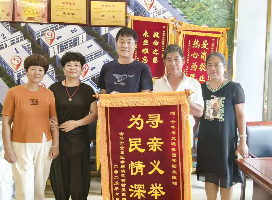 近日,浙江省金华市金东区孝顺镇范村村的村民叶某的家人心怀感激来到金华市交通投资公交集团客运金东公司,送上写有“寻亲义举 为民情深”锦旗,对车队工作人员热心助人的行为表示感谢。