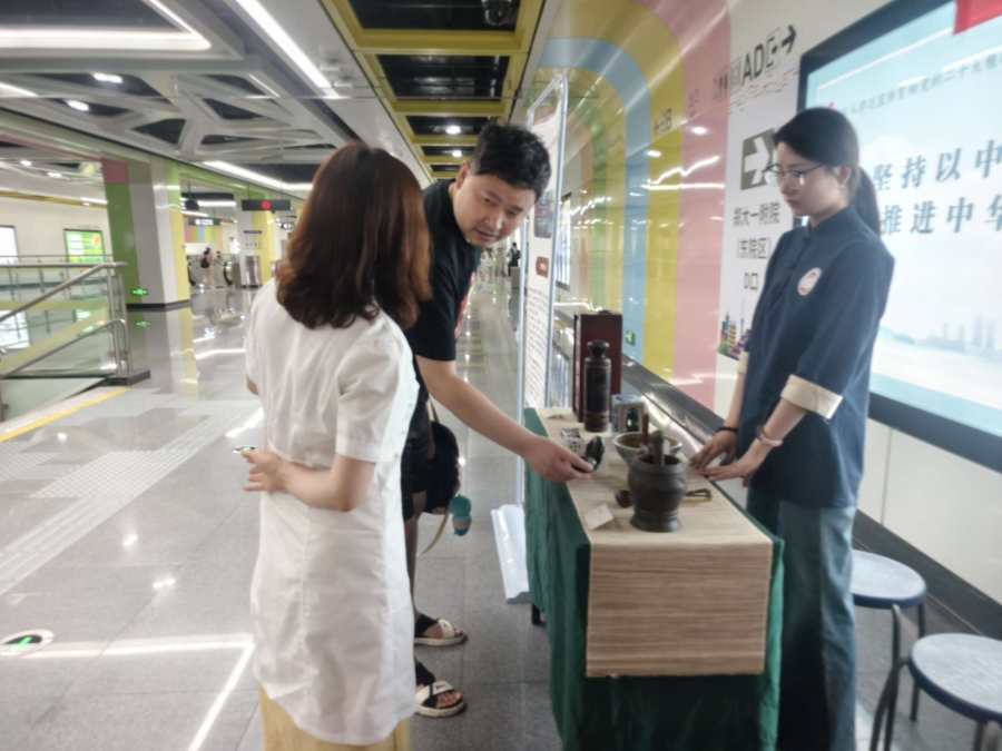 在炎炎夏日,郑州地铁 4 号线、 8 号线联合庚贤堂中医文化博物馆在地铁站内,举办的夏日中医传统文化宣传活动,吸引了众多乘客的目光。