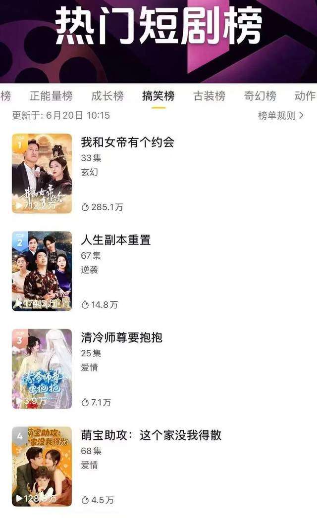 次日,短剧在他的抖音端原生及各平台上线,定价9.9元,当日便登上抖音热门短剧搞笑榜榜首和爱奇艺微剧飙升榜TOP2。