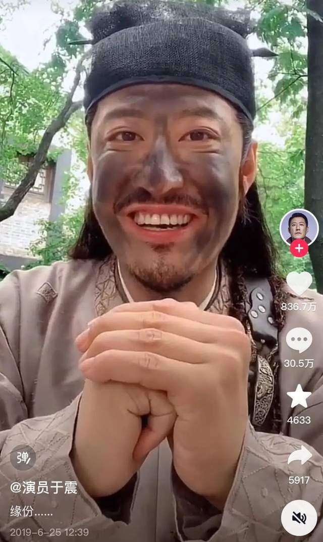 “别划啦,停,你划得到我,说明我们有缘分”,2019年6月,于震顶着全脸涂黑的戏妆,向屏幕外的观众喊话。这条视频获得800多万点赞,成为于震粉丝暴涨的起点。