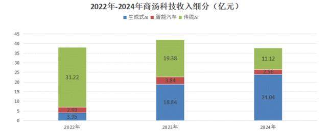 2024年,这一业务收入为24.04亿元,同比增长103.1%,生成式AI已经是商汤的主要创收业务,贡献总收入的63.7%。