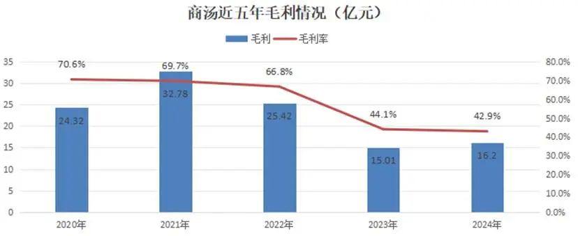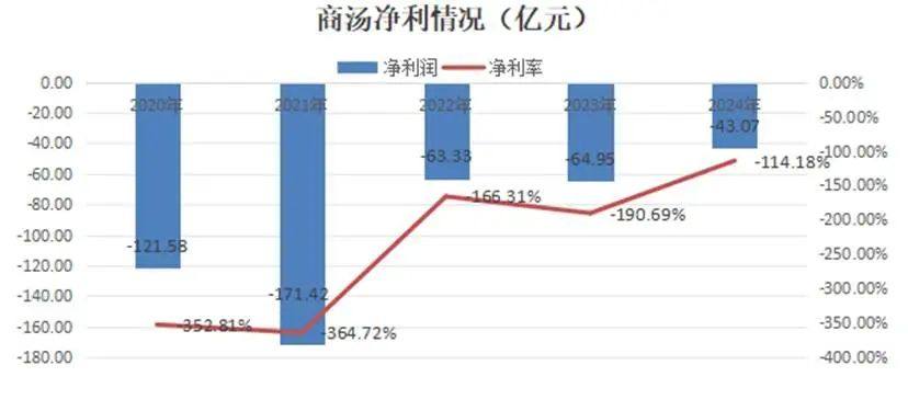 对应地,商汤毛利率从2020年的70.6%逐渐降低到2024年的42.9%。