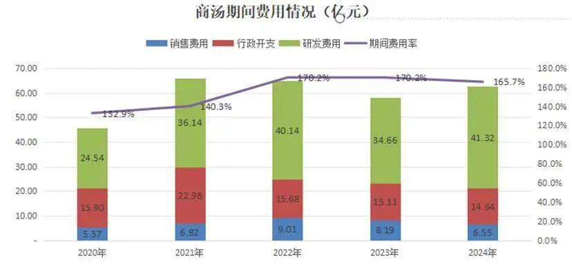 其次是持续不断的技术迭代、落地场景变迁,令商汤期间费用不断创新高,这是商汤连年亏损的主要原因,近五年亏了464亿元。