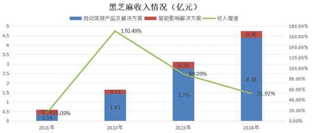对应地,黑芝麻智能的主营业务主要分为汽车自动驾驶产品及解决方案、智能影像解决方案两部分,其中,汽车自动驾驶产品及解决方案是黑芝麻智能的核心业务,24 年(4.38亿元)对收入的贡献比为92.4%。