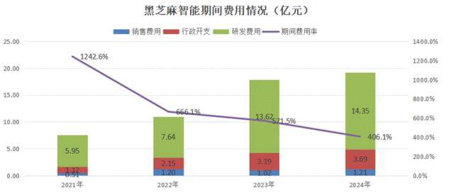 财报显示,21年-24年,黑芝麻智能的研发费用分别为5.95亿元、7.64亿元、13.62亿元及14.35亿元,分别是同期收入的9.8倍、4.6倍、4.4倍及3倍,这是黑芝麻智能亏损的主要原因。