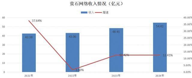 2024年,萤石网络实现营业收入54.42亿元,同比增长12.41%;公司同期归母扣非净利为4.83亿元,同比下降12.63%。