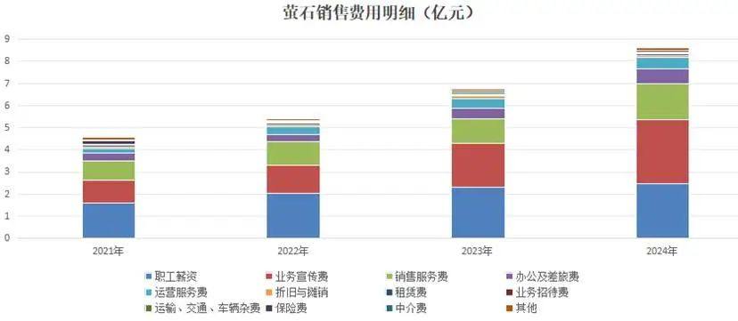 具体而言,业务宣传费是萤石近几年加速支出的部分,从21年的1亿元增长到24年的2.9亿元,目前是构成营销费用的主要科目。