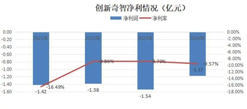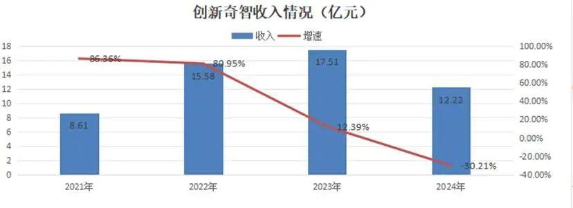 2024年,创新奇智实现营业收入12.22亿元,较上年同比收窄30.21%,这是其收入首次收窄。