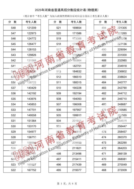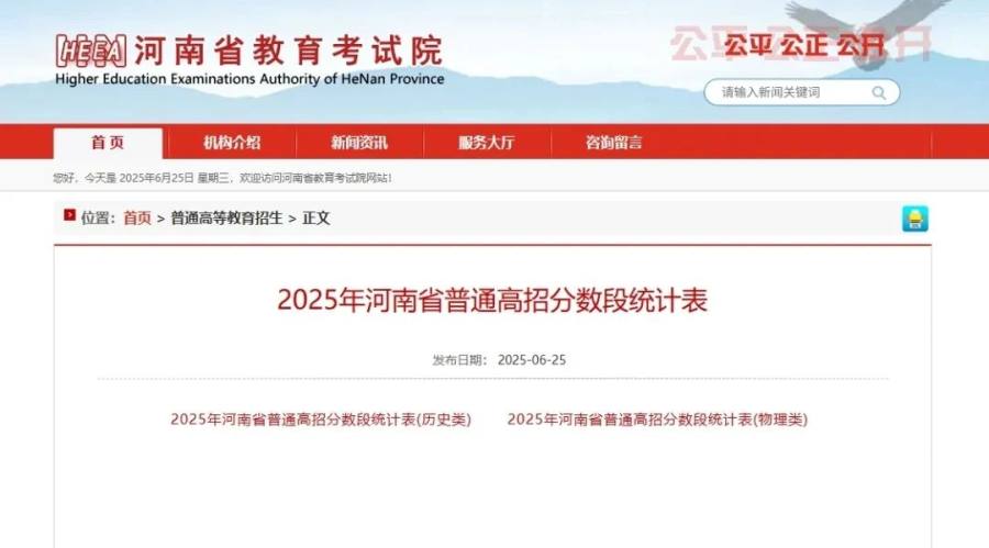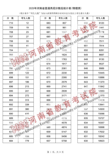 2025年河南省普通高招分数段统计表