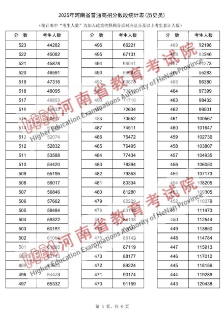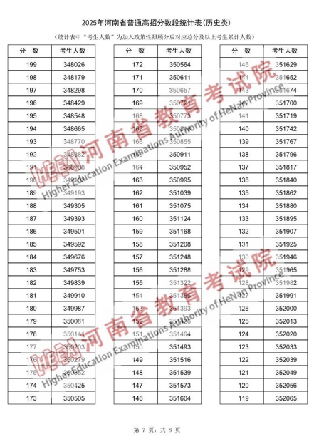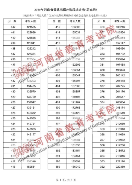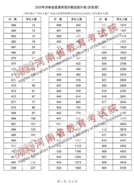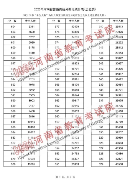 2025年河南省普通高招分数段统计表(历史类):