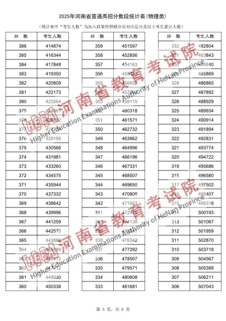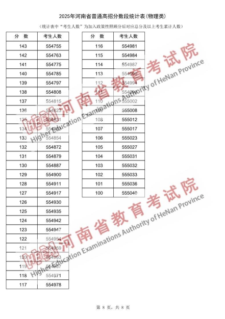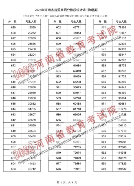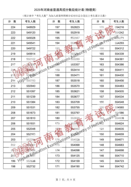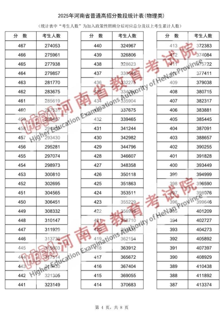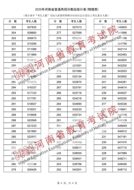2025年河南省普通高招分数段统计表(物理类):