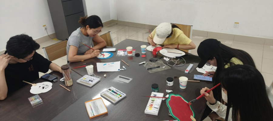 社区的“艺术家”们也纷纷亮出巧思。薛阿姨凝神点染出青皮乌籽的西瓜扇面,鲜翠欲滴,引得小朋友拍手叫好;社区书画班的石爷爷,细笔轻点殷红饱满的红豆,“粒粒皆相思”的情谊跃然扇上;热爱诗词的陈老师挥毫泼墨,在方寸团扇间铺展“接天莲叶无穷碧”的夏日意境;而地铁工作人员张译文,饱蘸金墨,郑重写下“平安喜乐”的美好祝愿,笔端流淌着对和谐社区的期盼。小小的扇面,成了居民们表达夏日心境、传递邻里祝福的缤纷画布。