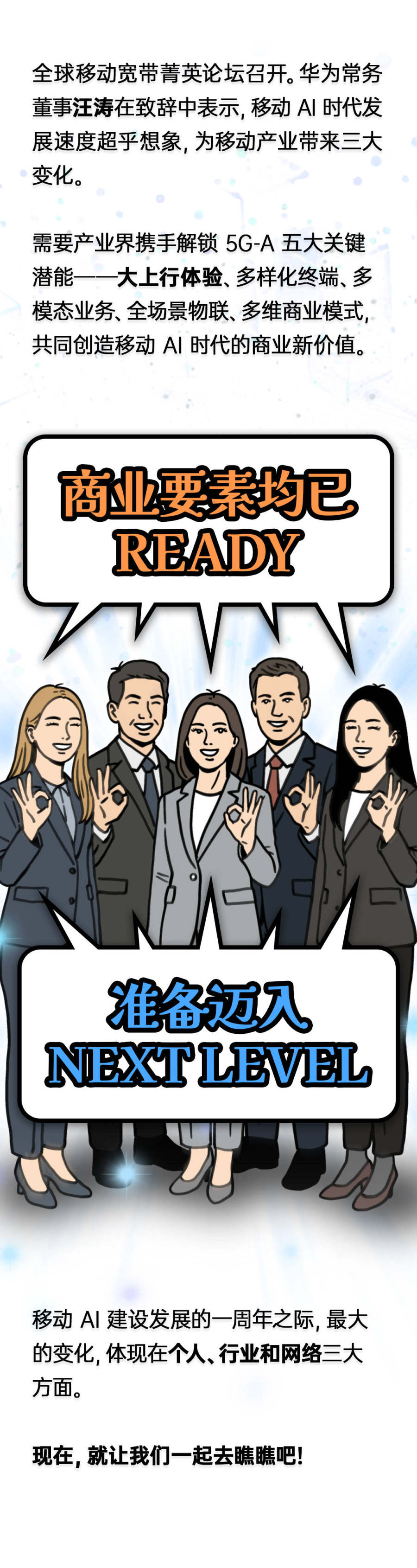 现在,产业界正在解锁5G-A五大关键潜能——大上行体验、多样化终端、多模态业务、全场景物联、多维商业模式,共同创造移动AI时代的商业新价值。