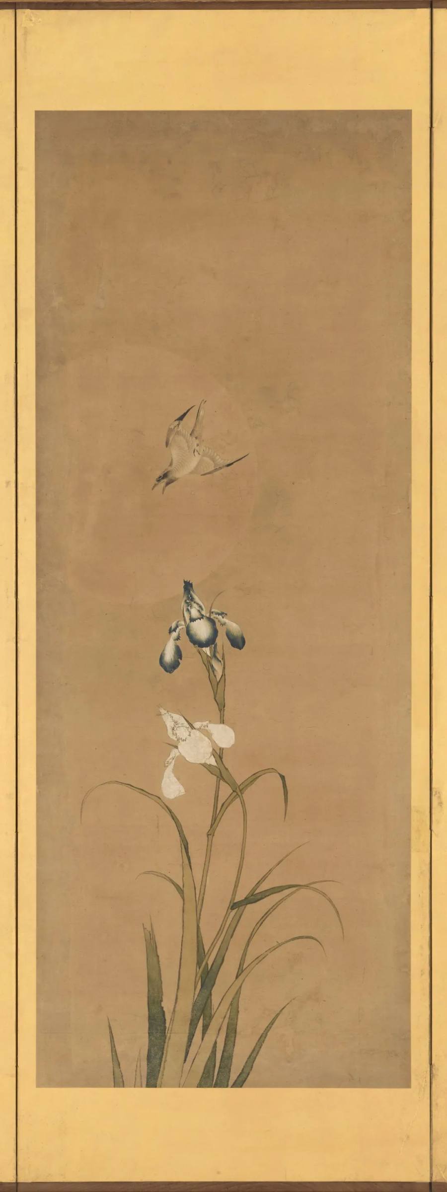 此图无题,无名,无款,不写亭台,不画池水。唯以一花一鸟,寄山林幽人之怀,托高士忘机之意。鸢尾者,不争春之繁华,不媚秋之华贵,独在静处生华。在光影之外,有风自来;在枝叶之间,有梦暗生。