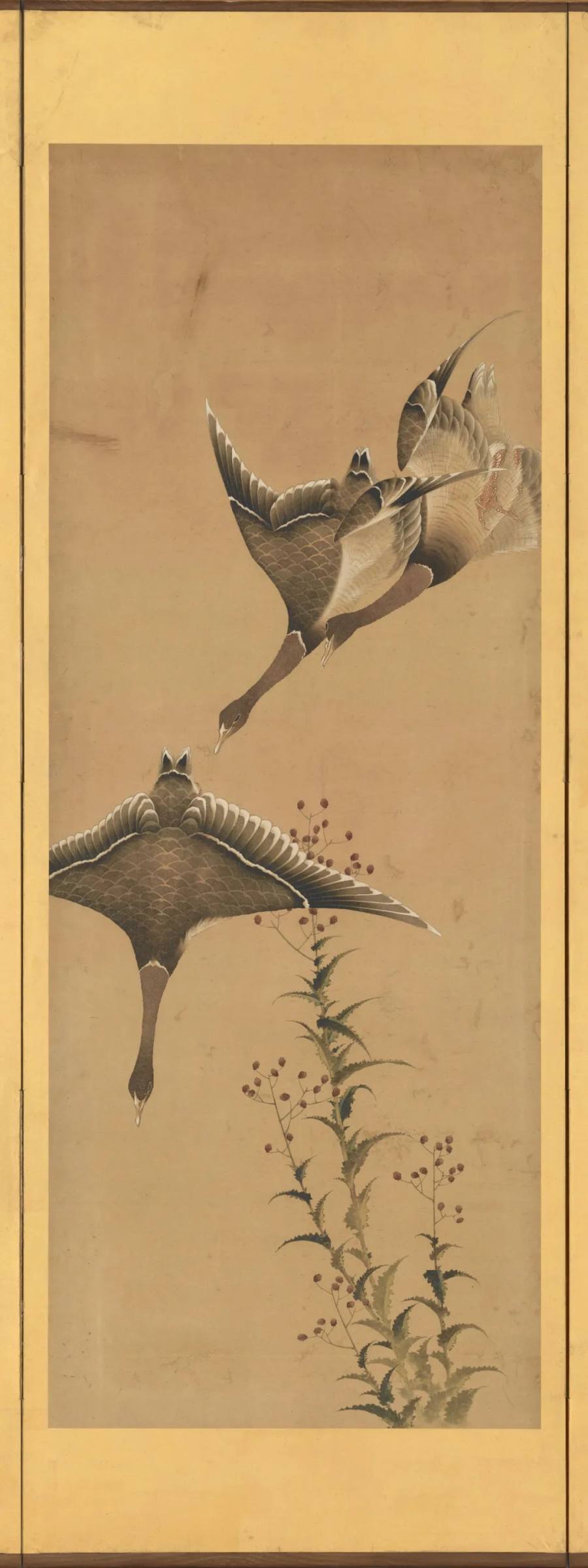 葛饰北斋《花鸟图屏》