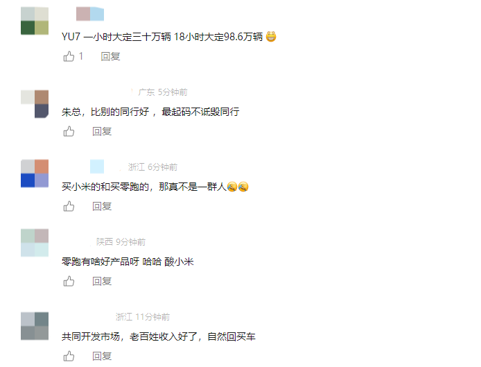 同日,2025高通汽车技术与合作峰会上,零跑汽车CEO朱江明坦然承认,YU7 1小时大定30万辆给零跑汽车带来巨大压力。被质疑蹭热度的同时,也有网友给了朱江明好评,“比别的同行好,最起码不诋毁同行”。