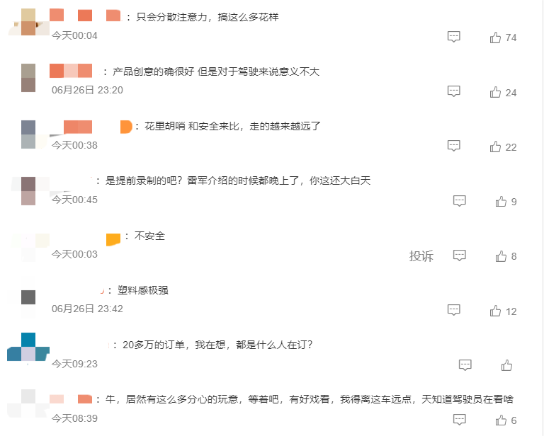 不仅是车企,网友们对小米YU7也是看法不一。社交平台上,有网友分析了小米YU7大定数量后表示,1小时大定突破28.9万台,这一情况用米粉行为来解释很明显说不通。但是也有一些网友在小米YU7的测评视频下面评论,一些功能“花里胡哨”,“塑料感极强”,“都是什么人在订?”