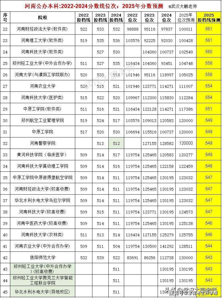 河南一本院校:2022-2024分数线位次,2025年分数线预测