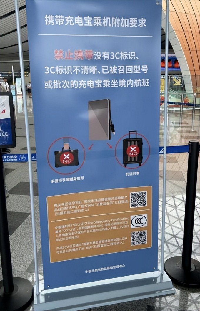 紧接着,26日,中国民航局发布紧急通知,自6月28日起禁止旅客携带没有3C标识、3C标识不清晰、被召回型号或批次的充电宝乘坐境内航班。