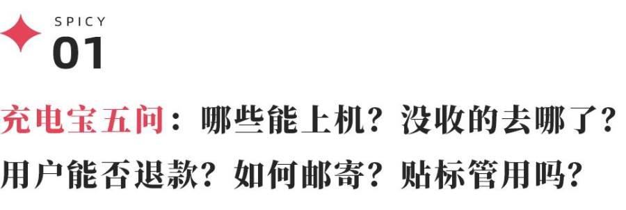 在此次事件中,如今消费者们最想知道的问题就是:充电宝哪些能上机?被没收的充电宝去哪了?用户能否退款?如何邮寄?贴标管用吗?