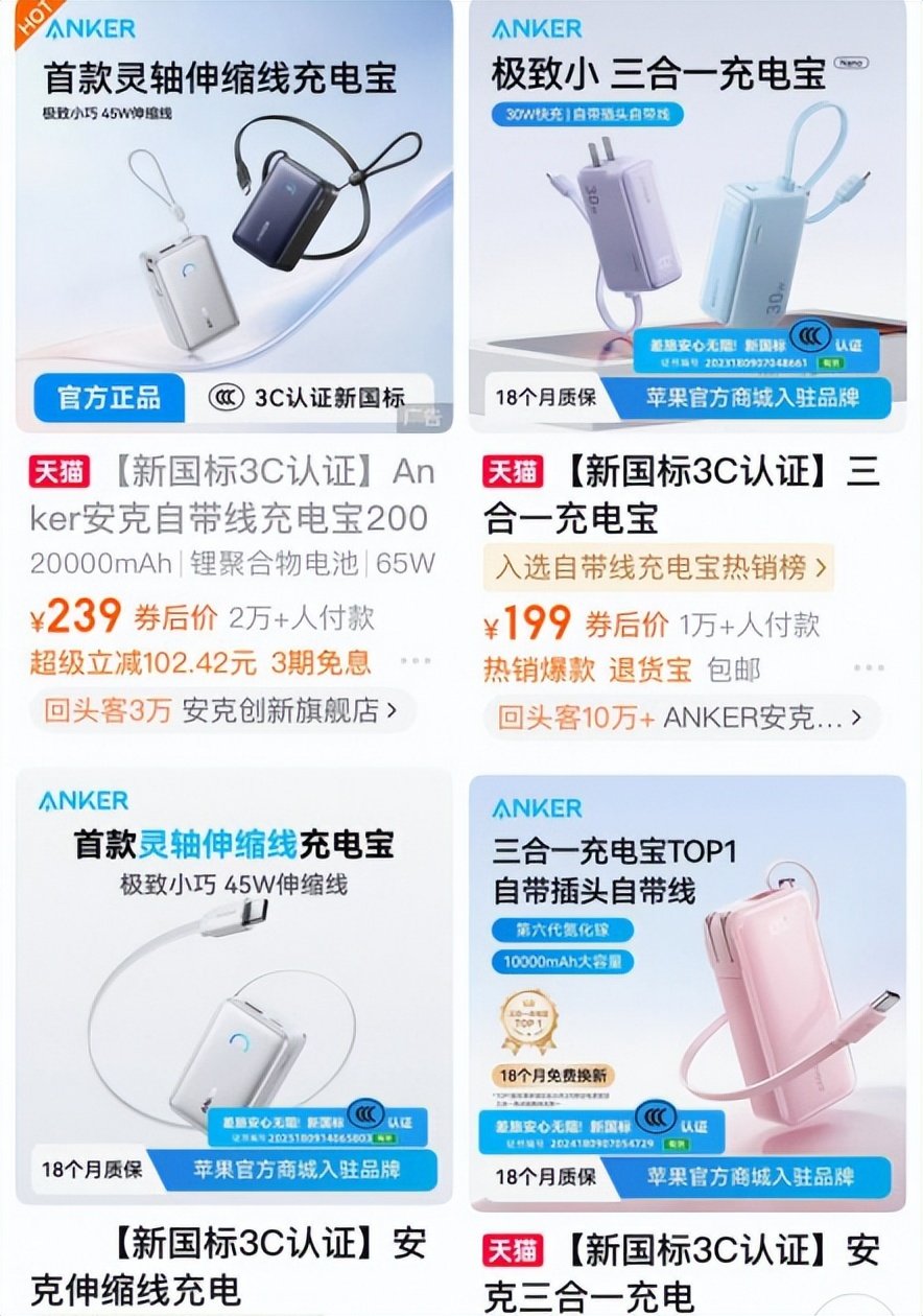 安克创新旗下充电宝产品图源:淘宝平台截图
