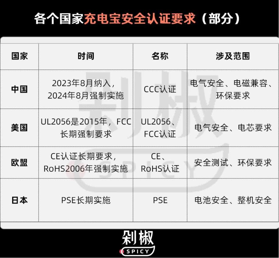 其实,多个国家都对充电宝做出了安全认证的要求。