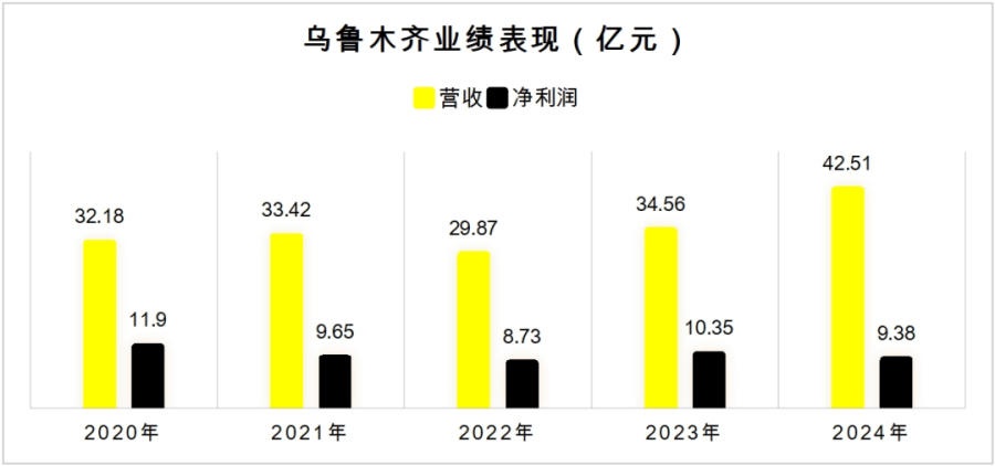 2024年,乌鲁木齐银行交出了一份增收减利的“成绩单”:营收42.51亿元,同比增长22.95%;净利润9.38亿元,同比减少9.54%。