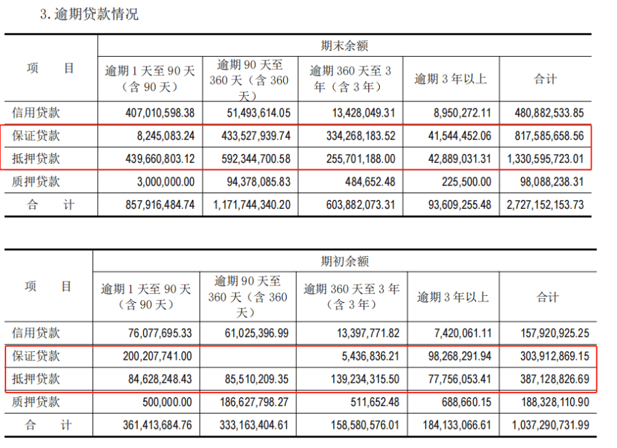 更值得警惕的是乌鲁木齐银行逾期贷款结构的变化,逾期90天以上的贷款从期初的3.33亿元狂飙到期末的11.72亿元,其中,保证贷款和抵押贷款“突飞猛进”,分别从0增至4.34亿元,从0.86亿元增至5.92亿元。