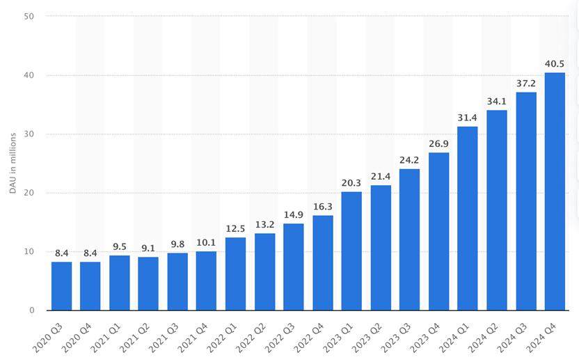 • 日活跃用户 (DAU) 为 4660 万,较去年同期增长 49%;