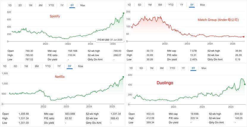 采取同样商业逻辑的上市公司,几乎都会格外受到青睐。最经典的案例还有Netflix和Spotify,猴子最新的市盈率甚至也高达118倍。