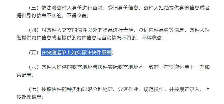 《快递市场管理办法》第二十六条明确规定,“在快递运单上如实标注快件重量。”