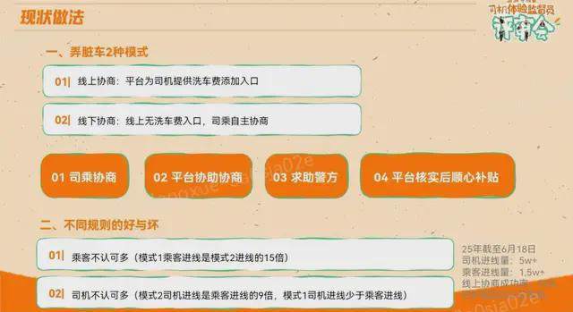 线上协商已在五个城市试点,提供洗车费入口,分30元、100元、200元不等;线下协商则主要以司乘自主协商为主,平台协助处理纠纷。如果平台协商不成,会推荐求助警方。如果前面几项都不成功,平台会提供一些补贴,让受委屈的司机有一些保障。