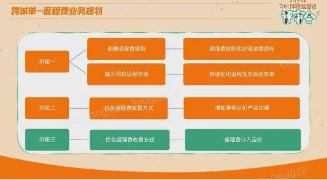第一阶段,明确返程规则,持续优化司机返程优先派单应答率;第二阶段,优化返程费收取方式,增加乘客议价产品功能;第三阶段,优化返程费收费方式,将返程费计入定价。